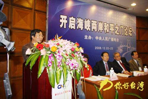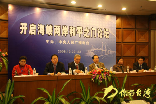 “開啟海峽兩岸和平之門”論壇是在改革開放走過30年、兩岸關系迎來“三通”新時代的大背景下召開的。中央人民廣播電臺副臺長趙鐵騎在開幕式上致詞時表示,和平發(fā)展已成為兩岸關系的主旋律,是人心所向、大勢所趨;兩岸從隔絕走到接觸、從敵對走向協(xié)商,在互通中彼此的了解正在增多,理解正在加深,因而感情也將更加密切,利益更加融合;隨著兩岸直接“三通”的基本實現(xiàn),海峽兩岸將迎來大交流、大合作、大發(fā)展的新階段。