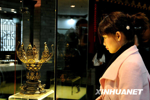 2月6日,市民在精品展上參觀清代文物《銅鎏金綠度母》。新華社記者 張國俊 攝