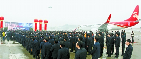 2月8日上午,河南至臺灣空中直航首航儀式在鄭州新鄭國際機場隆重舉行。
