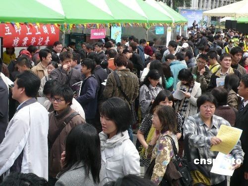 圖為就業(yè)博覽會(huì)上求職民眾人潮涌動(dòng),人人都盼望能夠“立即上工”。
