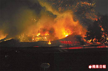 地震發生后不久,桃園八德市一處倉儲發生大火,燒死一名男子。 來源:臺灣《蘋果日報》