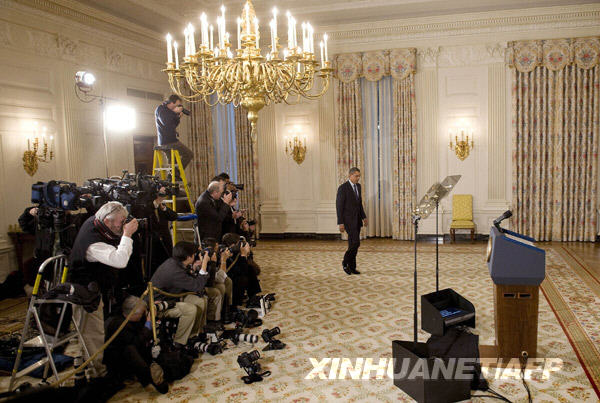 1月7日,在美國首都華盛頓白宮,美國總統奧巴馬準備就圣誕節未遂炸機事件發表講話。當日,奧巴馬宣布為圣誕節未遂炸機事件承擔責任。新華社/法新