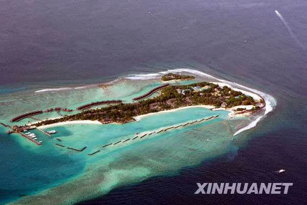 這是9月7日在馬爾代夫上空拍攝到的一個旅游島。位于印度洋中的南亞島國馬爾代夫,1200個島嶼的平均海拔只有1.5米。一批科學家發布的最新報告表明,如果目前全球變暖的趨勢得不到遏制,那么馬爾代夫和其他一些地勢低洼的國家可能會在本世紀消失。馬爾代夫總統納希德表示,馬爾代夫將盡力避免這種情況出現,但在最壞的情況下,馬爾代夫可能會舉國搬遷。新華社記者陳占杰攝