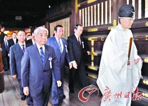 20日上午,包括日本眾院副議長衛藤征士郎在內的54名“超黨派”人士又“效仿”谷垣禎一參拜了靖國神社。這些“超黨派”人士都是日本眾參兩院的議員,有的來自執政黨的民主黨、社民黨,有的來自自民黨、公明黨。他們組建了一個名為“大家一起參拜靖國神社國會議員會”的團體。 (阿 南)