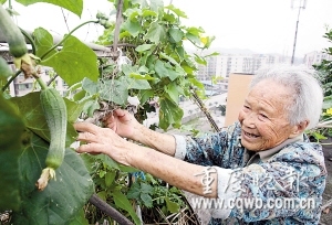 羅婆婆在樓頂經營小菜園 記者 周舸 攝