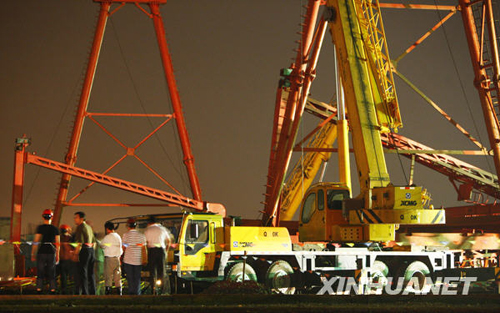 京滬高鐵施工區一龍門塔吊倒塌致4死2傷(圖)