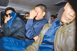 臺灣調查團30日詢問9名疑似開火射擊的菲律賓海巡隊員,隊員進入菲律賓國家調查局,見大批媒體守候,又掉頭駛離,車上隊員遮掩躲避鏡頭。(圖片來源:臺灣《中國時報》)