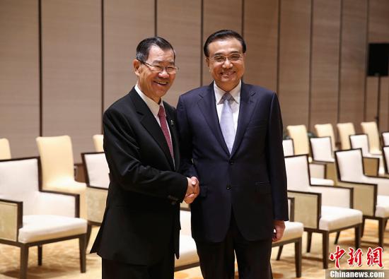 3月24日下午,國務(wù)院總理李克強在海南博鰲會見兩岸共同市場基金會榮譽董事長蕭萬長一行。中新社記者 劉震 攝