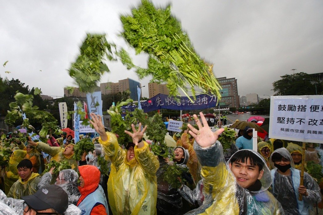 抗議群眾向向蔡辦投擲一堆“爛菜”,表達(dá)心中怒火。(圖片來(lái)源:臺(tái)灣《聯(lián)合報(bào)》)