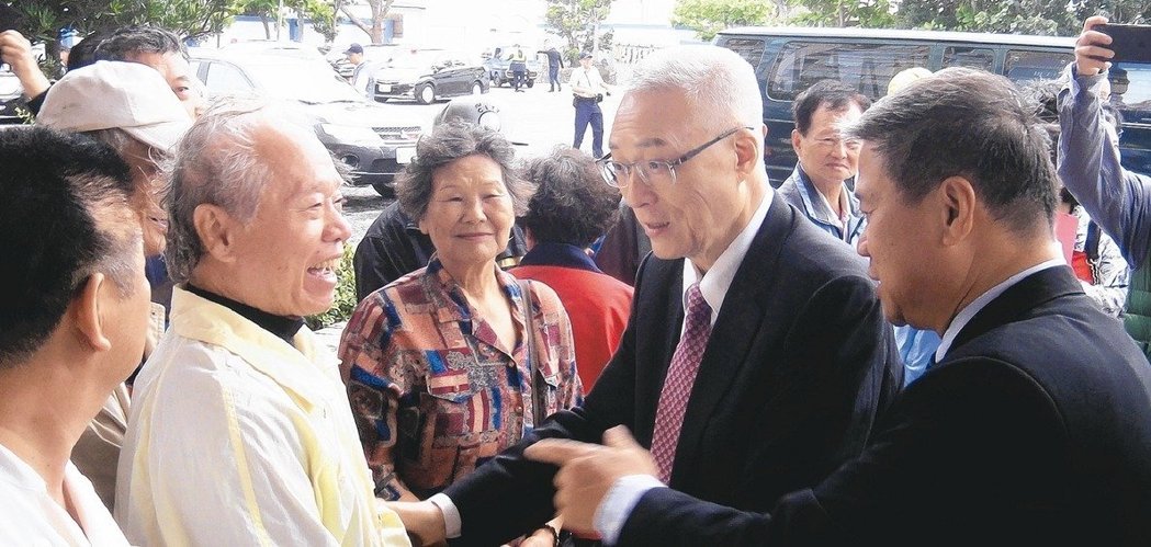 國民黨主席候選人吳敦義(右二)昨二訪屏東,到恒春參加團結(jié)大會。(圖片來源:臺灣《聯(lián)合報》)