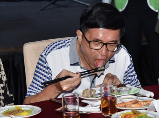 臺灣地區(qū)前領(lǐng)導(dǎo)人陳水扁日前公然違反監(jiān)獄規(guī)定,出席募款餐會坐上首桌。(圖片來源:臺灣“東森新聞云”)