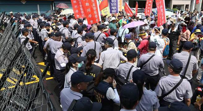 反年改抗議群眾200多人在場外與維安警力對峙。(網絡圖)