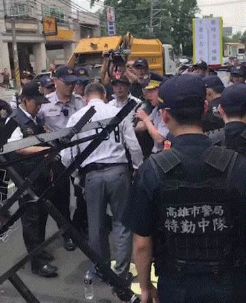 結束了“走后門”參拜,蔡英文下午出席高雄燕巢區“角宿天后宮”贈匾儀式,抗議群眾依舊如影隨形。據報道,現場有200多人與維安警力對峙。蔡英文于下午1點55分左右抵達,車隊到達時,在門口守候的抗議團體開始鼓動,隔著拒馬與警方嗆聲,有民眾甚至丟擲木炭、煙霧彈,現場冒出陣陣濃煙,警方立即將其中3名帶頭者帶至派出所盤查身份。