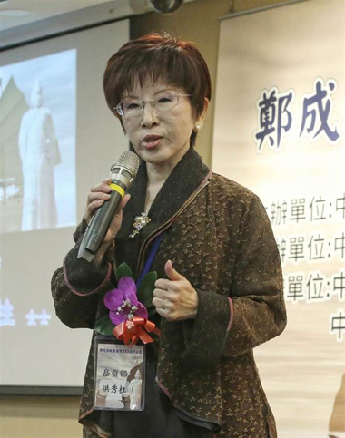 國(guó)民黨前主席洪秀柱出席“鄭成功收復(fù)臺(tái)灣355周年論壇”。(圖片來源:臺(tái)灣“中時(shí)電子報(bào)”)
