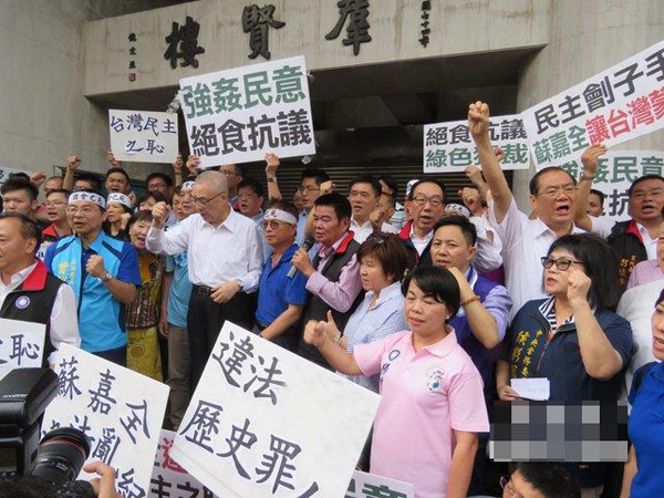 吳敦義率300人挺絕食“藍委”,高喊“拼了”!(圖片來源:中評社)