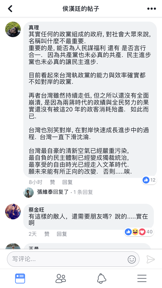 更多網(wǎng)友以文字表達(dá)對(duì)臺(tái)灣一邊標(biāo)榜“自由”一邊被內(nèi)耗拖垮現(xiàn)狀的憤怒: