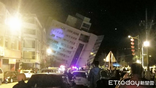 花蓮地震中的倒塌大樓。(圖片來源:臺(tái)灣“東森新聞云”)