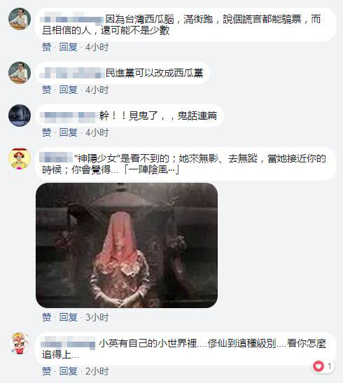 對(duì)于“神隱少女”蔡英文口中“你不知道我在接近你”的說(shuō)法,網(wǎng)友貼出靈異少女的圖片大呼,“見(jiàn)鬼了,鬼話連篇”、 “神隱少女”是看不到的;她來(lái)無(wú)影、去無(wú)蹤,當(dāng)她接近你的時(shí)候;你會(huì)覺(jué)得……“一陣陰風(fēng)……”