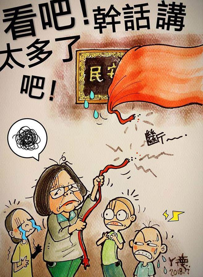 中國臺灣網7月16日訊 據臺灣《中時電子報》報道,臺灣地區領導人蔡英文13日到臺南市佳里金唐殿贈匾“郅善安民”,在揭匾時她所拉的紅繩居然斷掉,現場氣氛尷尬。資深氣象主播李富城在臉譜網(facebook)發指,天恕人怨,不詳之兆。“阿德漫畫”粉絲專頁則曬漫畫酸說“看吧!干話講太多了吧!”讓網友不禁笑成一團。