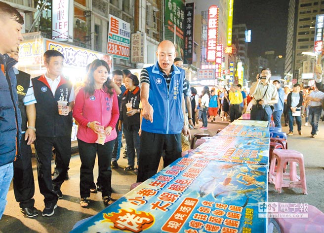 韓國瑜5月間曾和黨內議員拜訪高雄六合夜市攤商,往昔摩肩接踵的盛況已不復見,許多攤位桌椅空蕩沒生意。(圖片來源:臺灣《中時電子報》)