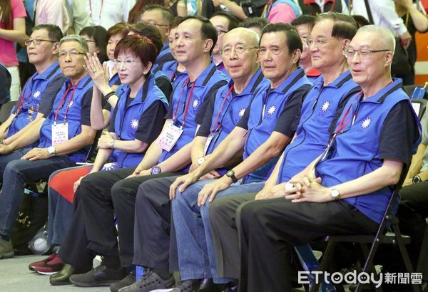 國民黨19日舉行第20屆第2次全臺代表大會,歷屆黨主席齊聚。(圖片來源:臺灣“東森新聞云”)
