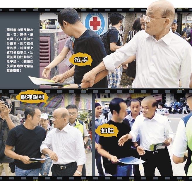 據(jù)報道,蘇貞昌23日上午在瑞芳成立競選總部,卻在陳志強(qiáng)上前遞交“深澳電廠健康風(fēng)險評估報告”時,出現(xiàn)拍肩、拍肚等動作,還向陳表示“謝謝你!祝福你喔!我們一起加油”,但隨即匆匆離去。蘇此舉引發(fā)爭議,雖然當(dāng)晚蘇辦發(fā)出新聞稿表示,“在拿資料的過程中,如果因為急促中聲音大,或碰觸到他讓他覺得不舒服,誠心向他致歉”,但卻未獲陳志強(qiáng)的原諒,引發(fā)外界抨擊。