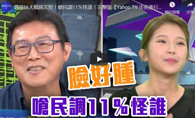 姚文智和“雞排妹”19日參加YahooTV《市長進行式》直播節(jié)目,兩人針對政治議題數(shù)度交鋒。節(jié)目中“雞排妹”指出姚文智曾說“年輕人不懂政治”,姚否認:“我沒有說你們不懂政治”。“雞排妹”隨即補充:“你是說‘如果你用這些片段的信息來質(zhì)疑我過去的努力的話,那代表你不懂政治’”。