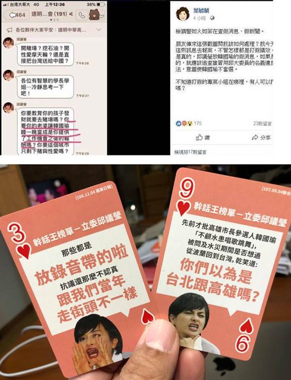 民進黨干話撲克牌中收錄邱議瑩的干話。(圖片來源:臺灣《中時電子報》)