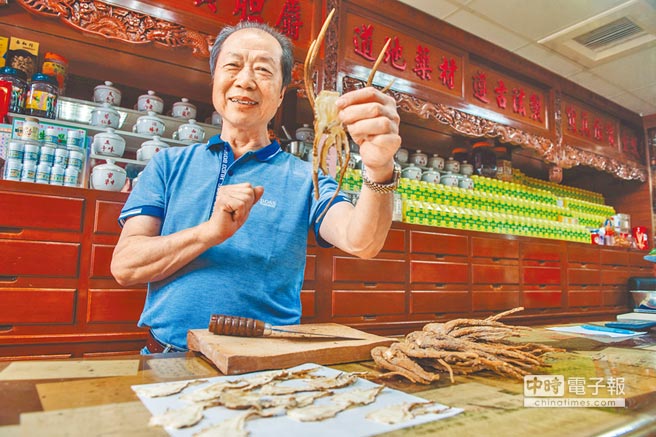 島內中藥房面臨凋零,中藥房老板盧永嵐14歲當學徒,如今年近古稀,即便一身本領傳承兒子,擔心兒子將來也無用武之地。(圖片來源:臺灣”中時電子報“)