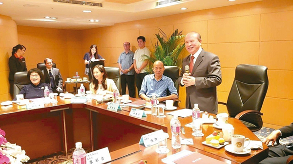 準(zhǔn)高雄市長(zhǎng)韓國(guó)瑜(右二)昨天拜會(huì)臺(tái)灣義聯(lián)集團(tuán)董事長(zhǎng)林義守(右一)。 (圖片來(lái)源:臺(tái)灣《聯(lián)合報(bào)》)