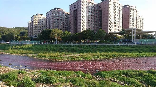 南崁溪被民眾拍下染成紅褐色的畫(huà)面。(圖片來(lái)源:臺(tái)灣“中時(shí)電子報(bào)”)