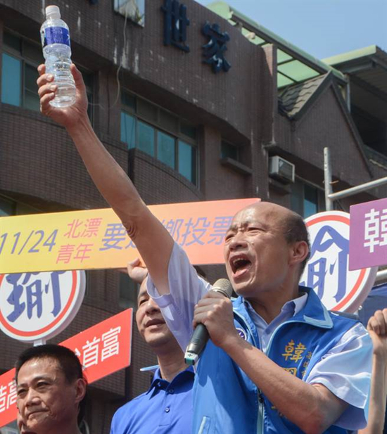韓國瑜在九合一選舉高呼支持“九二共識”,獲多數民眾肯定,顯見人民期待兩岸關系解凍、榮景再現。(圖片來源:臺灣“中時電子報”)
