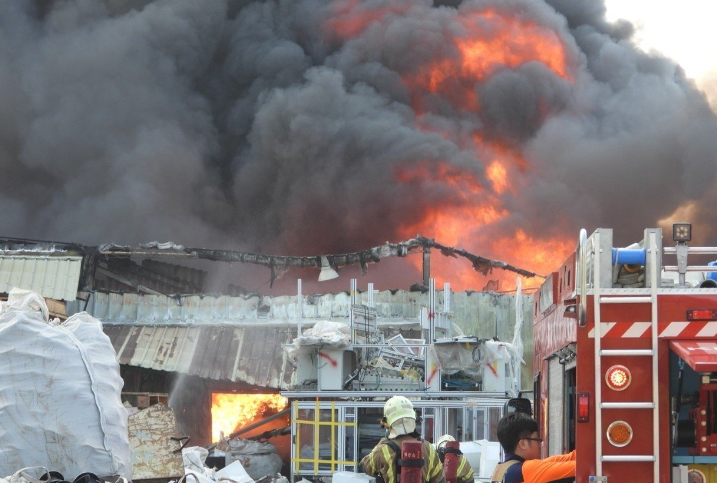 臺南善化回收場大火,1人受困。(圖片來源:臺灣《聯合報》)