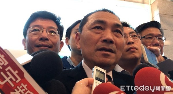 提“肉圓爸”暴打妻兒,侯友宜表情突然嚴肅。(圖片來源:臺灣“東森新聞云”)