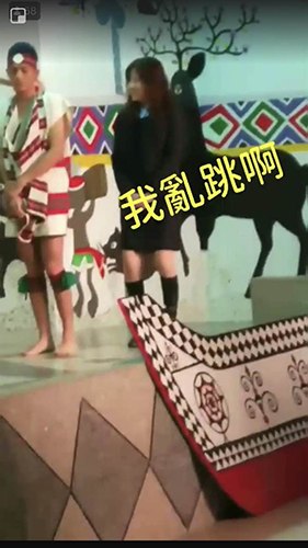 醉酒女子亂入基隆市少數(shù)民族舞蹈團的表演,還直呼“我亂跳啊!”。(圖片取自臺媒)
