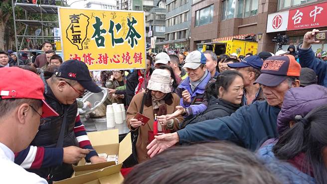 死忠韓粉杏仁哥準備1000顆包子及3000份杏仁茶免費發送,用實際行動力挺韓國瑜。(圖片來源:臺灣“中時電子報”)