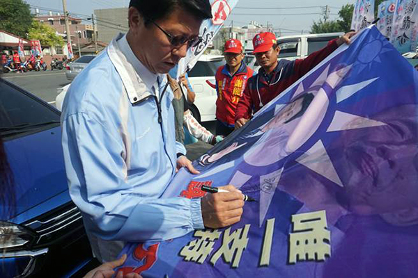謝龍介替支持者簽名。(圖片來源:臺灣“中時電子報”)