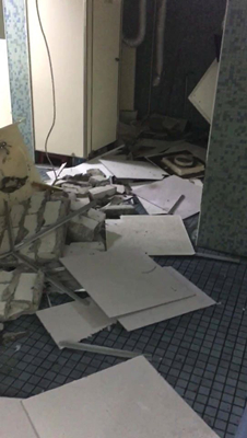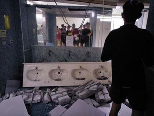臺(tái)灣師范大學(xué)校舍發(fā)生磁磚掉落,男生宿舍洗手臺(tái)被震垮等情況(圖片來(lái)源:臺(tái)灣“聯(lián)合新聞網(wǎng)”)