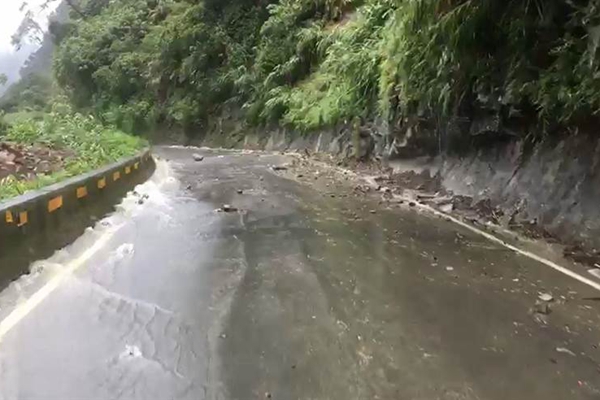 苗栗縣泰安山區(qū)部分路段出現(xiàn)落石。(圖片來源:臺灣“中時電子報”)