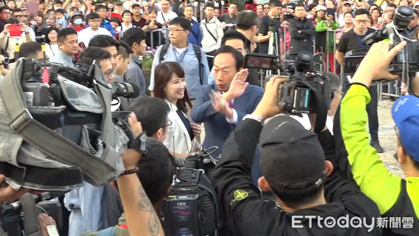 郭臺(tái)銘到場(chǎng)時(shí)被堵訪(fǎng),對(duì)于會(huì)不會(huì)和宋楚瑜合作?郭頻頻說(shuō)“不會(huì)啦”,隨后到會(huì)場(chǎng)跟柯、宋合體。過(guò)程中,郭也不時(shí)和柯交頭接耳,指著臺(tái)上的表演,兩人笑呵呵,顯然把老宋晾在一旁。