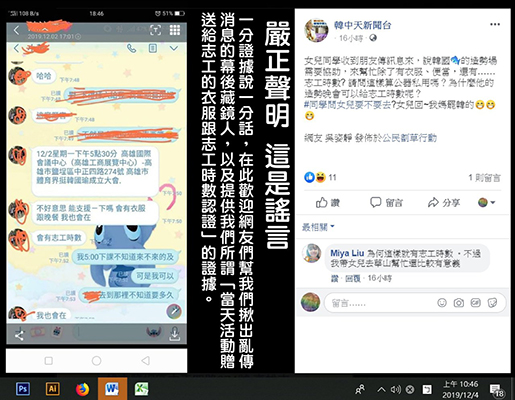 網絡流傳韓國瑜造勢有志愿者時數,國民黨澄清絕無此事,痛批抹黑!(圖片來源:臺灣“中時電子報”)