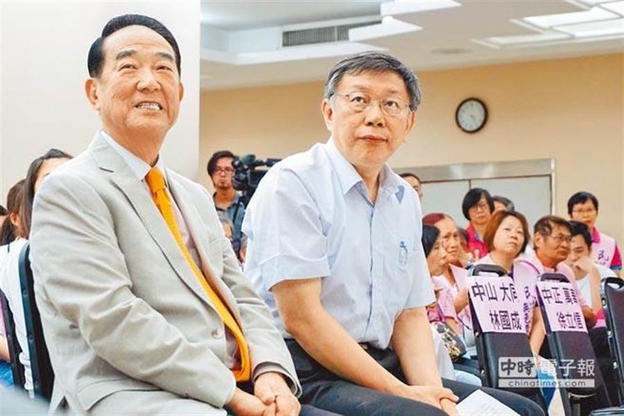 臺灣親民黨主席宋楚瑜(左)、臺灣民眾黨主席柯文哲。(圖片來源:臺灣“中時電子報”)