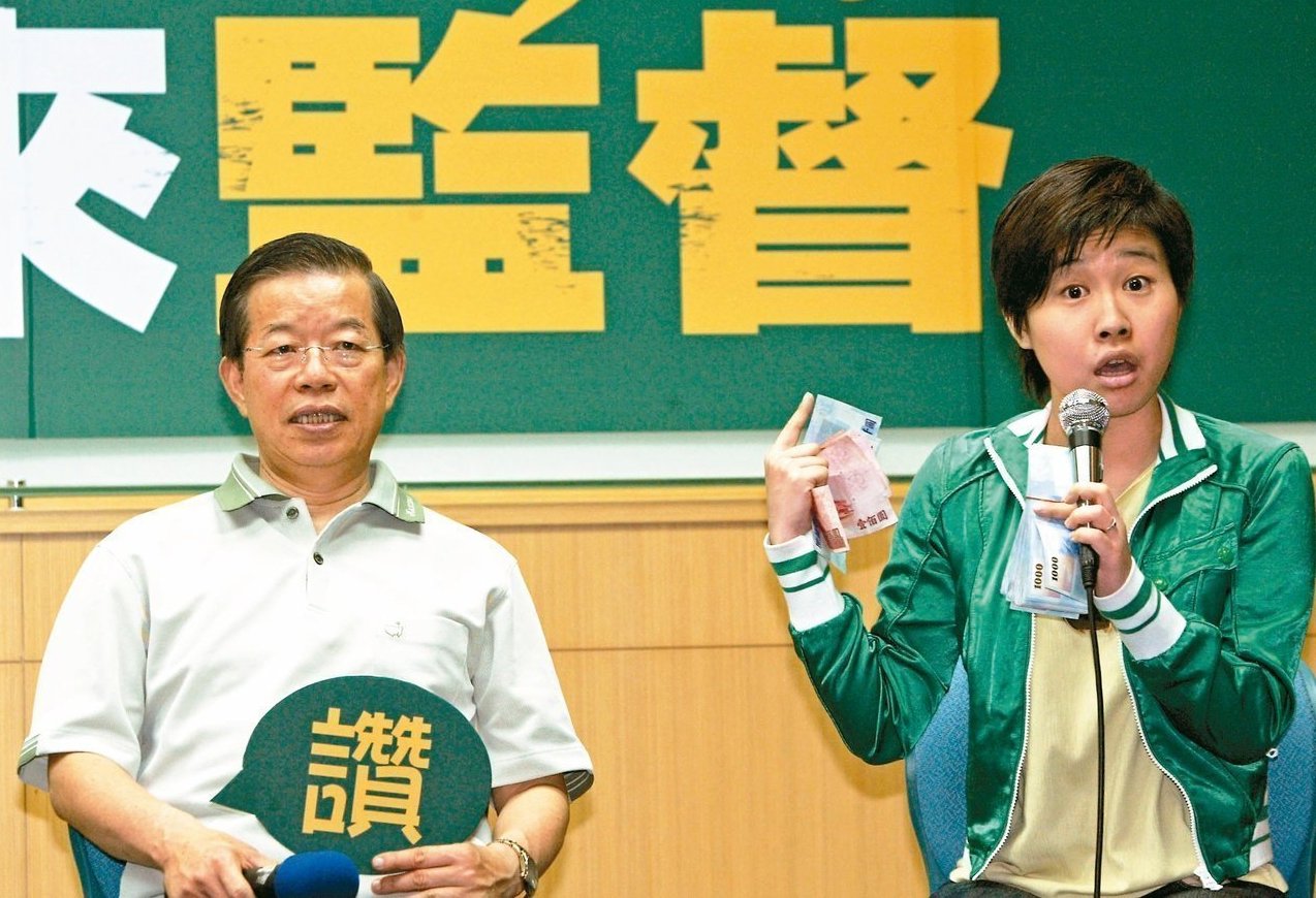 臺灣民進黨當局“駐日代表”謝長廷與“網軍”頭目楊蕙如。(圖片來源:臺灣“聯合新聞網”資料圖)