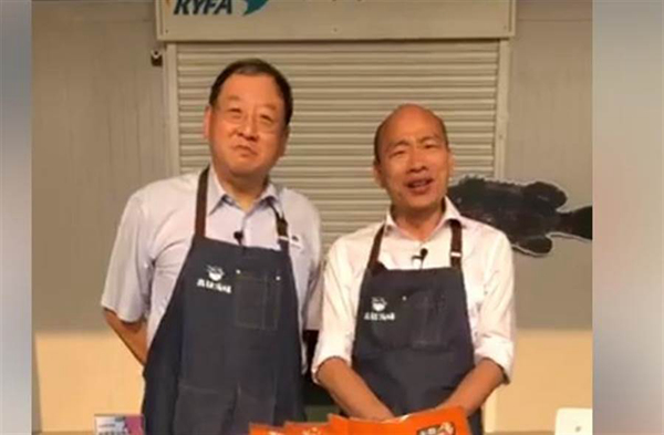 韓國瑜化身“賣魚郎”推銷高雄漁產。(圖片取自臺媒)