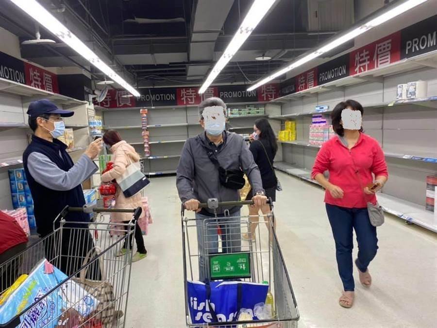 民眾進場狂掃貨品,家樂福貨架空蕩蕩。(圖片來源:臺灣“中時電子報”)
