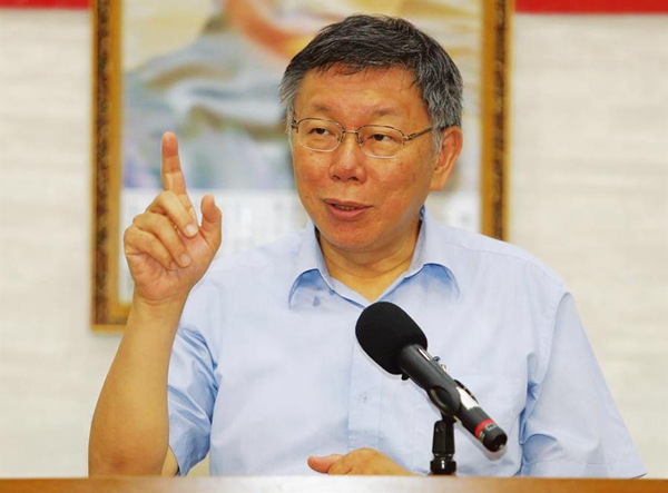 臺灣民眾黨黨主席、臺北市長柯文哲。(圖片來源:臺灣“中時電子報”)