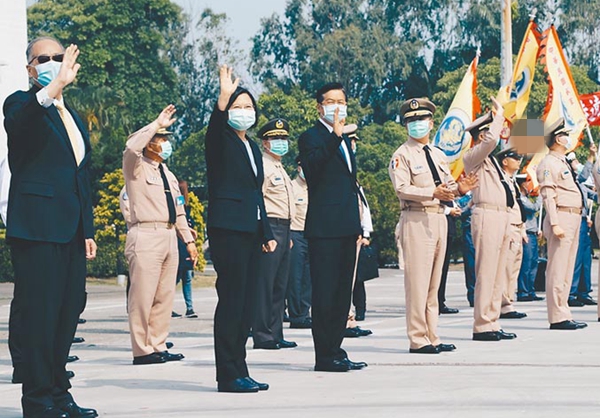 敦睦艦隊(duì)返臺(tái)時(shí),臺(tái)灣地區(qū)領(lǐng)導(dǎo)人蔡英文曾親自南下視察,接見(jiàn)軍隊(duì)。(圖片取自臺(tái)媒)
