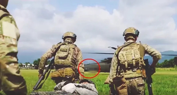 據(jù)報道,這部時長44秒的影片公布在美軍特戰(zhàn)第一總隊官方網(wǎng)站與社交媒體上,開頭有近10秒,采用其所轄特戰(zhàn)分隊在臺灣與臺陸軍特戰(zhàn)部隊共同執(zhí)行室內(nèi)攻堅、戰(zhàn)傷救護(hù)、人員撤離等訓(xùn)練畫面,多名美軍教官搭配一名身著臺軍迷彩服的特戰(zhàn)官兵,在臺軍營舍中模擬進(jìn)行戰(zhàn)術(shù)搜索、攻堅,并由黑鷹直升機(jī)撤離。片中直升機(jī)尾桁上“陸軍”字樣在片中一閃而過,顯示美軍位置在臺灣。