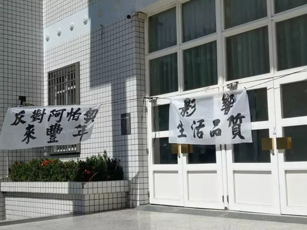 臺東縣政府18日舉辦“阿帕奇規劃進駐臺東”說明會,民眾在場外掛布條抗議。(圖片來源:臺灣《聯合報》)