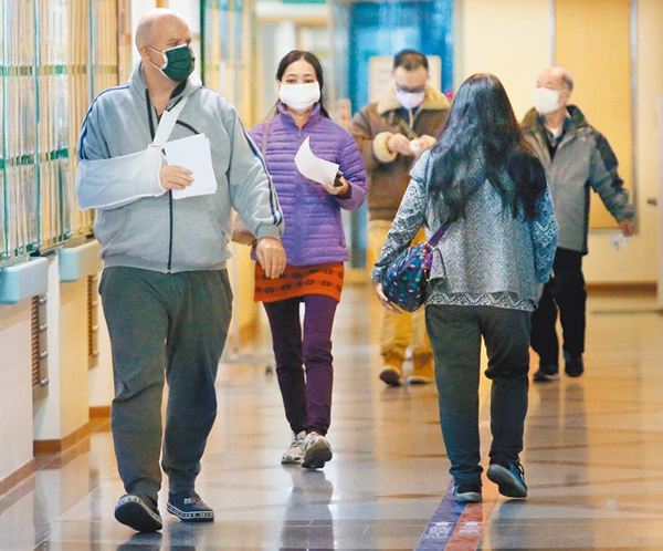 島內出現首例感染英國變種病毒死亡病例。圖為早前桃園醫院內民眾前往看診。(圖片來源:臺灣“中時新聞網”)